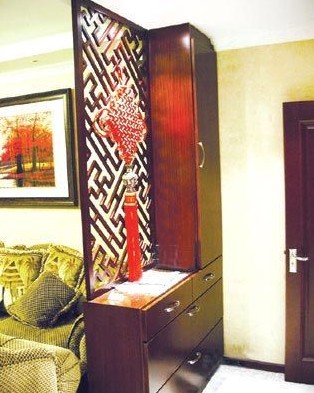 設(shè)玄關(guān)為了起裝飾作用,這里是客人從繁雜的外界進入這個家庭的最初感覺??梢哉f,玄關(guān)設(shè)計是設(shè)計師整體設(shè)計思想的濃縮,它在房間裝飾中起到畫龍點睛的作用,能使客人一進門就有眼睛一亮的感覺??剂康綄嵱眉邦A(yù)算,設(shè)計師建議用鞋柜代替玄關(guān)。