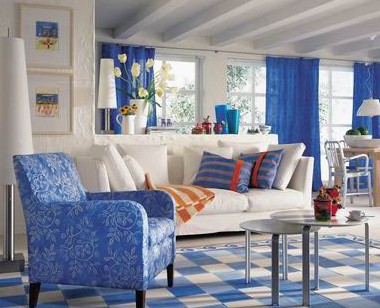 地中海風格的三種典型顏色搭配:藍與白;黃、藍紫和綠;土黃及紅褐。
