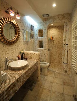 馬賽克鑲嵌、拼貼在地中海風格中算較為華麗的裝飾。主要利用小石子、瓷磚、貝類、玻璃片、玻璃珠等材質(zhì),切割后再進行創(chuàng)意組合。