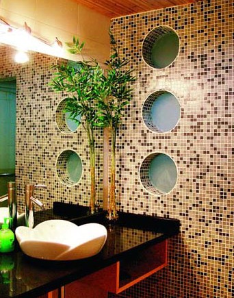 布局:幾何主義衛(wèi)浴間非常適合小面積衛(wèi)浴,爽朗的線條可以拉伸空間視覺感,采用深色系的墻地磚不僅耐臟,也能讓空間顯得大方、敞亮。這類衛(wèi)浴間中的布局要求簡(jiǎn)單,除了基本的面盆、潔具外,沐浴區(qū)最好采用淋浴房,標(biāo)準(zhǔn)規(guī)格的淋浴房面積一般在90cm×90cm以上,能保證沐浴時(shí)肢體有足夠的空間進(jìn)行伸展。選用圓形淋浴房可以相對(duì)節(jié)省空間,如果帶有儲(chǔ)物柜則更加理想,可以將洗浴用品一一陳列,讓空間顯得更加整潔。
