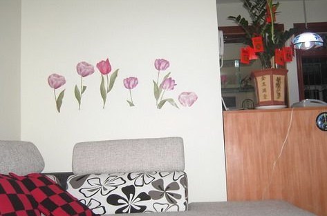 客廳是接待客人的地方,一般不要布置得太有個性。如果是滿墻貼飾可以選擇淡色小花的壁紙,這樣會把居室空間顯得大一些。歐式風格的裝修可以搭配豎條花色的壁紙;現(xiàn)代感的則應該用冷色調(diào),因而暖色調(diào)使用時間長了會讓人覺得煩躁。背景墻的色彩搭配則要與家具相適應,但要注意所用顏色不要超過三種,否則會顯得很亂。