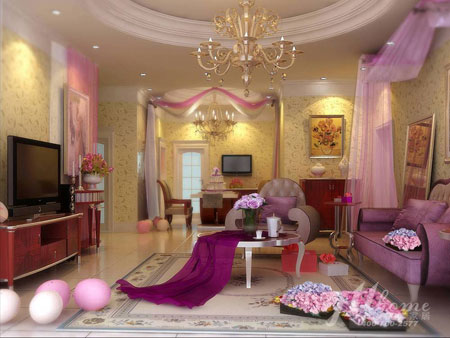 在紫色的花香蜜意、高貴典雅里,相愛(ài)的人盡情感受濃得化不開(kāi)的浪漫。高貴的紫色沙發(fā)雍容氣度,綺麗的水晶吊燈絢爛迷人,營(yíng)造出高雅浪漫氣息。精美雅致的幔簾、細(xì)膩柔和的吊燈,飽含深情的婚禮蛋糕,讓婚房處處透出甜蜜的氛圍。餐桌、座椅融入古典與現(xiàn)代設(shè)計(jì)精髓,中西合璧,優(yōu)雅大氣。造型動(dòng)感時(shí)尚的睡床、臺(tái)燈,配上穩(wěn)重、典雅的衣柜、床頭柜,整個(gè)臥室就 是一方溫馨的夢(mèng)的港灣。貼有銀箔裝飾的梳妝臺(tái),充分詮釋東西方文化精髓的高品位與新活力 。典雅的壁紙、玲瓏的書(shū)柜、醇厚的書(shū)桌傳遞主人不俗的書(shū)香品位。