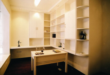 除利用自然光線之外,書房還要有必要的空間照明和書桌上的輔助光源。輔助光源應(yīng)均勻地分布于桌面。書房內(nèi)一定要設(shè)有臺燈和書柜用射燈,便于主人閱讀和查找書籍。光線最好從左側(cè)后方射入,以利于書寫、閱讀等活動的進(jìn)行。燈具一般應(yīng)配備有照明用的吊燈、壁燈和局部照明用的臺燈。在書桌上設(shè)置的書寫臺燈應(yīng)靈活、可調(diào),以確保光線的角度、亮度,光線也應(yīng)從左后方或左前方照射過來。但注意臺燈光線要均勻地照射在讀書寫字的地方,不宜離人太近,以免強(qiáng)光刺眼。此外還可以在書桌側(cè)面設(shè)置一小型的壁燈或活動式支架燈具?;顒邮街Ъ軣艟吣茈S意移動,并很好地調(diào)整光源的方向和高度,可放在組合柜隔板上,也可放在茶幾或小柜上,具體調(diào)節(jié)屆時(shí)可因地制宜。書房的燈光以清淡沖和為好。在保證照明度的前提下,可配乳白或淡黃色的壁燈與吸頂燈。