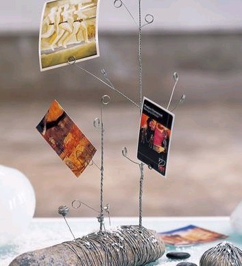 漂亮的卡片、重要的名片不用愁沒地方放,舊鐵絲也不要扔,只需要找一塊石頭,就可以解決所有問題:用幾根鐵絲擰在一起,不時地把枝杈留出,隨意折出自己想要的形狀。每個枝杈的末端要拿木棒纏出一個類似彈簧的夾子。最后再把樹根固定在石頭上,如果不想小樹太孤單,再為小樹做幾個可愛的小蘑菇。
