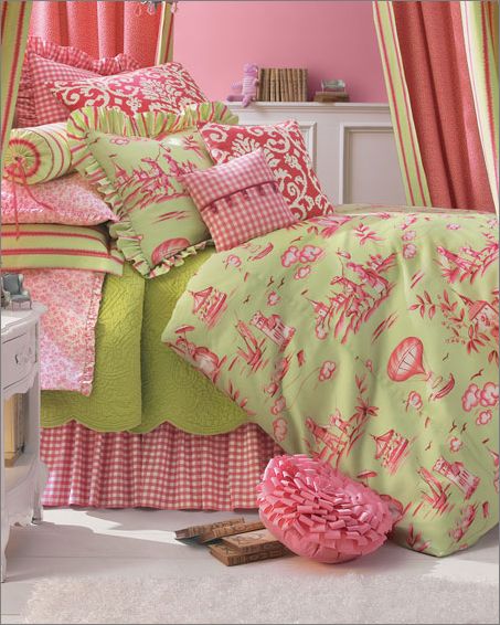 荷葉邊的被套和枕面上角處的花紋刺繡都是歐式風(fēng)格的絕佳詮釋。
