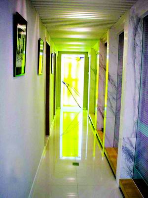 在“吊頂”中以繪畫玻璃覆蓋燈具,使光線更有“深不可測”的神秘性。其基本顏色以淡綠、淡藍(lán)、淡黃、淡粉為好,無色玻璃加彩燈其變幻性美不可言。有的人家天花板用彩繪翡翠玻璃裝飾,這種彩繪玻璃質(zhì)地優(yōu)良,宛如一江春水,遠(yuǎn)看色如碧玉,近看則清澈透明。配上綠色的燈光、草綠色瓷磚,再加之彩繪的森林、山水、花鳥等圖案,玻璃浮雕屏風(fēng),給人以精神輕松和涼爽愜意的舒適感。藝術(shù)玻璃的特殊裝飾效果越來越受到眾多家庭的喜歡。