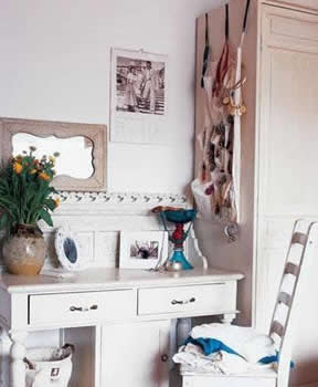 我們不得不佩服她的眼光,這些減去沉重還原本色的白色舊木家具,擺在房間的任何一個(gè)角落都很協(xié)調(diào),讓房間流動(dòng)著一種穿越時(shí)空的時(shí)尚。
