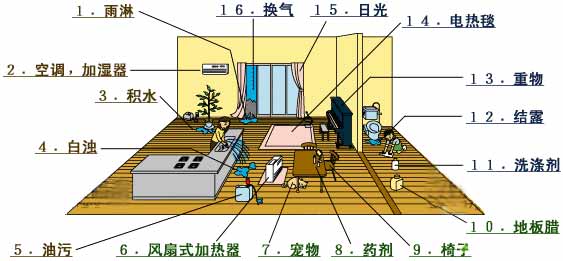 剛剛裝修好的房屋、會從裝修材料和家具中散發(fā)出甲醛、刺激眼睛或產(chǎn)生異味、要注意通風換氣,要注意結露后的水滴不要滴落到地板上。