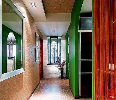 說到走廊裝飾,得提到一個“占天不占地”的原則,因?yàn)樽呃妊b飾的美觀主要反映在墻飾上。在走廊的墻壁上,可以采用與居室顏色相同的乳膠漆或壁紙。如果走廊溝通的兩個空間色彩不同,原則上走廊墻壁的色彩與面積大的空間相同。