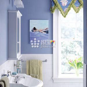 浴室中最理想的色調(diào)是粉色系,例如:粉紅、淡綠、淡藍(lán)及桃紅色等。其次則是奶油色系,或是一些中性色,如:黑色及白色。裝飾物及毛巾等配件則可選擇強(qiáng)烈的對(duì)比色系。