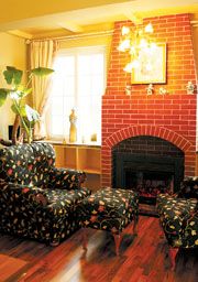 設計師在主臥中營建了一個小的休閑區(qū)域,并將光線分為雙向采光和直線采光,中間則為功能結構——壁爐,業(yè)主最喜歡的水彩畫便懸掛于其上。東易日盛裝飾設計師稱,兩邊的光線與植物、飾品、掛畫等交織在一起,形成一種自然和諧的空間氛圍。壁爐前是沙發(fā)區(qū),花形的吊燈,樸實的紅磚壁爐將人和環(huán)境有機的結合在一起。在主臥的一角,騰出了一塊書房的空間,滿足了主人在家臨時工作及書寫的功能需求。圓拱形的埡口設計,自然、樸實,與對面的壁爐遙相呼應。