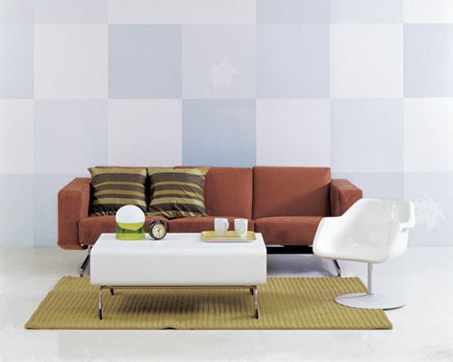 一個三人沙發(fā)加茶幾的擺放方式太規(guī)整,于是就靈活加入兩個散件來制造變化。三人沙發(fā)和茶幾的造型設(shè)計都很時尚,這里加入的散件是一個風(fēng)格類型接近的坐椅。坐椅不大,可以方便地在沙發(fā)周圍搬動,打破固定的客廳感覺。散件通??梢砸暽嘲l(fā)造型選擇坐墊、腳凳、扶手椅等簡單家具,不適合加入塊頭大的家具,否則小客廳就很擁堵了。