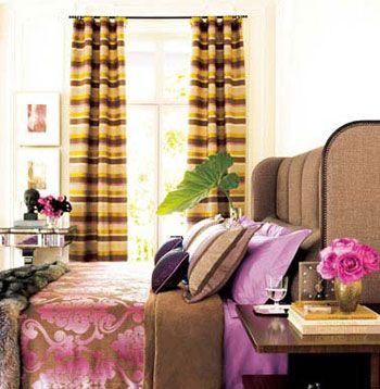 床品:淺褐色棉布床品與暗粉金色印花的組合,特別能夠體現(xiàn)初秋含蓄的韻味,銀灰色皮草毯子可以在閱讀的時候為身體保暖,褐色條紋的靠枕看起來柔軟密實,給臥室?guī)砹藴嘏臍庀ⅰ?/P>