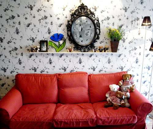 黑白是我為這個家挑選的主色調(diào),紅色是點綴的一筆。比如這張沙發(fā)。