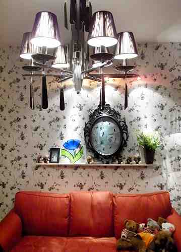 房子只是客廳用了墻紙,墻紙的搭配是根據(jù)區(qū)域的功能來劃分的,沙發(fā)區(qū)、餐廳區(qū)及電視墻三大區(qū)域,選擇了三款墻紙。沙發(fā)墻用的是白底黑色卷葉形狀的墻紙。