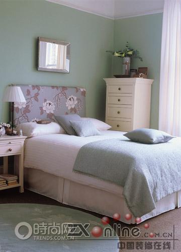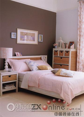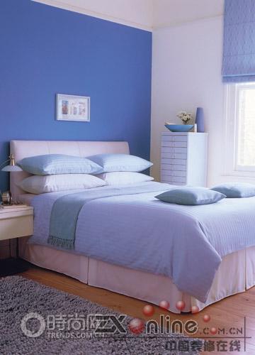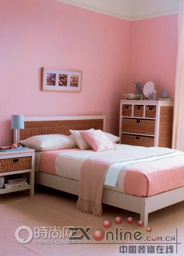 巧妙與鮮明 粉紅色的墻面定下整體基調(diào),給人以朦朧的浪漫感覺。Crucial Trading 的灰白色羊毛地毯,以及Harlequin 白色窗簾與粉紅色過度十分自然。白色的床邊小桌和柜子仍然帶藤制抽屜,桌上放有藍(lán)色托盤和藍(lán)色臺(tái)燈,是整體色調(diào)中活潑的一筆,柜子上飾以小圓鏡、藍(lán)色花瓶和小花枝?;野咨拇采细惨訪aura Ashley 粉紅色的床罩,白色床單、白色枕頭、藍(lán)、粉色小靠墊,溫暖而舒適。