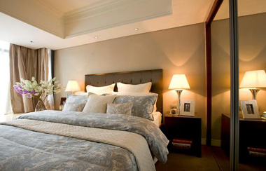 臥室依然大面積采用淺色調(diào),濃咖啡色的床頭柜和濃咖啡色的床,恰到好處的避免了臥室色彩的輕重失調(diào)。大面的鏡子在視覺上大大增加了臥室的空間。床頭柜上Harbor House白貝母相框和座鐘,滲出一點(diǎn)高雅與脫俗。床頭燈柔和的燈光又能讓臥室不失溫馨與親切。