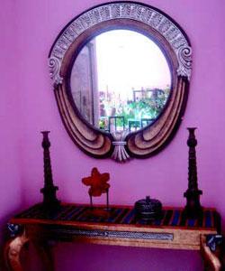 結合了現(xiàn)代元素的豹尾鏡,采用古樸的實木雕刻,抽象化的豹尾設計,使整個鏡子顯得華麗端莊而又不失現(xiàn)代感,很適合大面積居室。而邊角采用圓弧設計的桌柜,不僅可以使其容積增大許多,同時也提升了家具本身的華貴感。