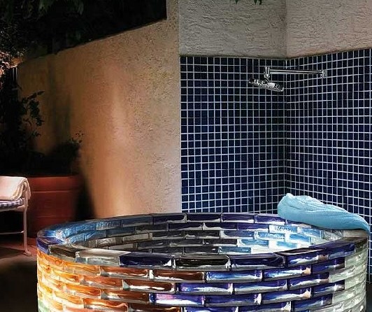 目前市場上流行的玻璃磚大體可以分為兩種,即空心玻璃和手工藝術(shù)玻璃。其中空心玻璃是以燒熔的方式將兩片玻璃膠合在一塊,再用白色膠攪和水泥將邊隙密合,可依玻璃磚的尺寸大小、花樣、顏色來做不同的設(shè)計。依據(jù)尺寸大小,可設(shè)計出直線墻、曲墻或不連續(xù)墻等不同的表現(xiàn)方式。