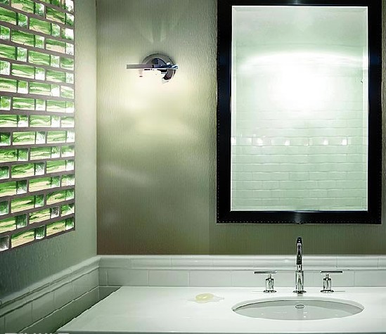 雙層霧玻璃磚墻因為可以提供良好的采光效果,隔音、隔熱,節(jié)約能源并有延續(xù)空間的感覺,從而成為部分人裝修居室墻面的時尚選擇。其實在家庭裝修中,不論是單塊鑲嵌使用,還是整片墻面使用玻璃磚,都會有畫龍點睛的效果。
