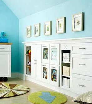 在以免不常用的墻上,裝上這樣的櫥柜,不僅節(jié)約空間,而且可以提供大量的儲存空間,可以收納孩子的玩具、衣服、鞋子和其它東西??梢再I幾塊小匹配的小地毯,比買一大塊地毯更加的劃算,也更實用,還可以給孩子創(chuàng)造許多不同的小玩耍區(qū)。