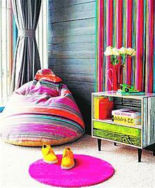 在纖細(xì)條紋的漸變中,色彩的明度、飽和度也隨之改變。亮粉與天藍(lán)、淡粉與橘黃的碰撞,此刻呈現(xiàn)的是愈發(fā)突出的層次感。從墻壁裝飾的條紋布藝到舒適的條紋沙發(fā),玩出花樣的條紋撞色,營(yíng)造出的卻是無法替代的雅致。
