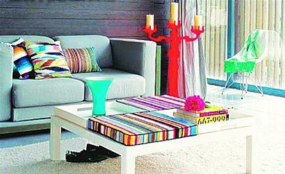 撞色,似乎已經(jīng)不再是藝術(shù)家或者設(shè)計(jì)師的專利,只要用點(diǎn)心,平常人也能制作出令人傾心的上品?;疑珘驎r(shí)髦,看得久了,有些冷清,也沒有快樂,其實(shí)你可以試試用粉色或藍(lán)色系來調(diào)和。把各種色彩大膽地組合在家具上,空間的層次也得以拉伸。