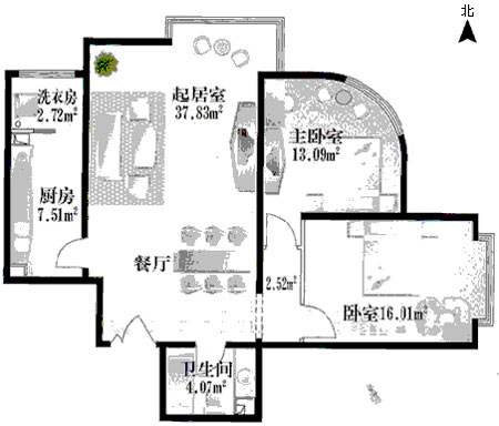 4、正北方處于絕命位,但是用于起居室,影響不算很好。
