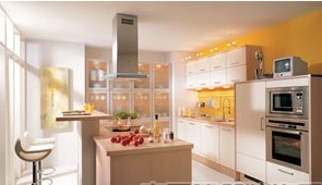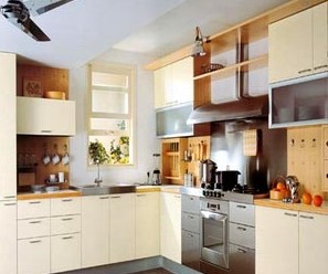 如今設(shè)計師的創(chuàng)意能將整個廚房都藏了起來:在一字形或L形櫥柜 兩側(cè)分別設(shè)計一個立式儲物柜,此柜 的四面能依次拉伸,組合成一扇長長的柜門,需要時,就可 將此四扇門向中間合攏,將中間的工作臺、吊柜和地柜都掩藏起來。