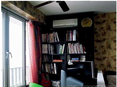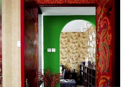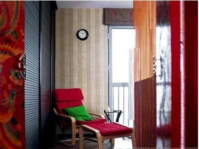 從臥室望向客廳,紅與綠的色彩象兩重美麗的畫框,鎖住了一道家的風(fēng)景。