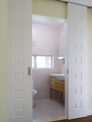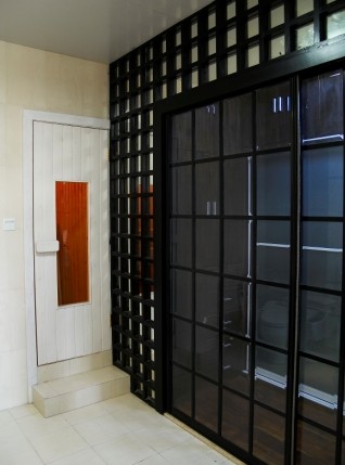 木制移門,最好把移門、導(dǎo)軌設(shè)計在衛(wèi)浴間外面,不易濺到水,使用壽命比放在里面長。