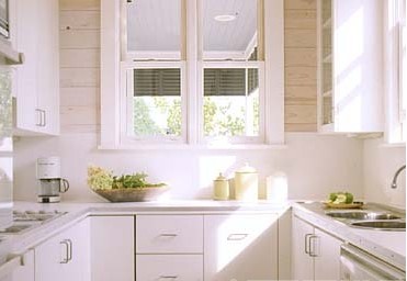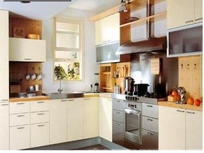 如今設(shè)計師的創(chuàng)意能將整個廚房都藏了起來:在一字形或L形櫥柜 兩側(cè)分別設(shè)計一個立式儲物柜,此柜 的四面能依次拉伸,組合成一扇長長的柜門,需要時,就可 將此四扇門向中間合攏,將中間的工作臺、吊柜和地柜都掩藏起來。