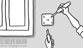 在處理電燈開關(guān)與插座周邊位置時,先關(guān)掉電源,以正常方式貼平壁紙,覆蓋過這些地方,然后再將蓋過開關(guān)與插座部位的壁紙自中央向四個角落切開。接著松開螺絲,以切開部位的紙緣折入蓋內(nèi),再裁掉多余的部分即可。