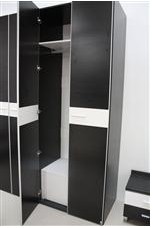 5M238-6六門衣柜內部空間被劃分為三廂,左右兩廂格局對稱相成,內部又被劃分成多個小區(qū)域,給折疊的大小衣物分明別類區(qū)分收納;還有掛衣間,掛桿高度適中,空間長度適宜。邊側兩廂對稱的格局可分別收納家中的男女主人的衣物,或者是冷暖時節(jié)分開儲放。