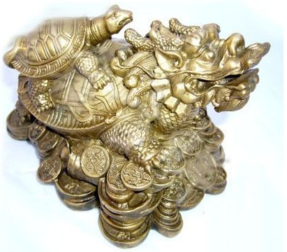 龍龜是傳說中龍的九子之一,它有龍頭龜身的外形,風水學上有四靈祥瑞,這四靈祥瑞指的是:龍、鳳、麒麟、龜,而龍龜是龍和龜的結合物,因此更具有靈瑞之氣。龍可以化小人、增加貴人運與人緣,龜代表長壽與健康,還可化陰煞、斗三煞,最重要的還可增加財氣。