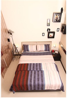 甫入室內(nèi),10坪大的空間內(nèi),設(shè)計(jì)師將之分為三個(gè)區(qū)塊:客廳、書房、臥室??臻g的呈現(xiàn)以休閑度假為主要訴求,因此設(shè)計(jì)師以若隱若現(xiàn)的線簾柔化空間表情,并能巧妙分割兩個(gè)場域,墻面上亦以小鳥的設(shè)計(jì)貫穿整室:客廳處的沙發(fā)后墻一排列的小鳥立在枝芽上,為空間寫入俏皮迷人的趣味氣息;床頭旁停留在展示框上的小鳥,呢喃低語的伴著主人入夢。在設(shè)計(jì)之外,藉由裝置藝術(shù)讓家里更增添生活上的創(chuàng)意與巧思,誰說墻面就一定要是壁紙?誰說臥室就一定要有隔間?誰說燈具就一定要立在桌幾上?生活本來就是隨性自然,居家表情本來就是多元巧思。本案眠臥空間以大小不同的畫框虛實(shí)交錯(cuò),交乘出新穎趣味的墻面表情,創(chuàng)造空間的無限可能。生活結(jié)合藝術(shù),才能完整呈現(xiàn)居家美學(xué),不應(yīng)只考量到機(jī)能,而忽視生活美學(xué),明樓聯(lián)合設(shè)計(jì)認(rèn)為生活品質(zhì)的提升,除了透過室內(nèi)設(shè)計(jì)外,若是在軟性的訴求上結(jié)合藝術(shù)與人文創(chuàng)意,更能譜出悅耳動(dòng)聽的生活樂章。