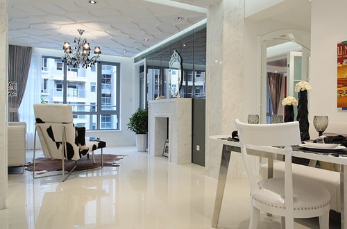 9:我們還必須要考慮整個客廳的方向,而客廳的方向,主要是以客廳窗戶的面向而定。 南向客廳背景墻宜以白色來做主色。南方五行屬火,乃火氣當旺之地,按照五行生克理論,火克金為財,故若要生旺向南客廳的財氣,則白色為首先,因為白色是“金”的代表色。除此以為,采用白色這類冷色來布置,還可有效消減燥熱的火氣。