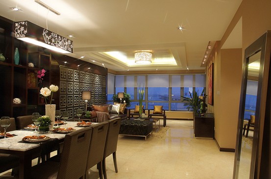 2、客廳采光要明亮 ,所謂風水學上的明堂暗室。白天要保證自然光的采用,晚上燈光要以主燈為主,配合局部照明,來滿足家人生活要求,燈光的色彩和溫度會使室內空氣上、下對流,產生好風水,但同時要避免眩光和五行的平衡,所謂的五行度!