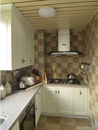 島形的廚房是在廚房中間設(shè)置料理臺,安排成工作“金三角”,這樣一來也有冂形布置的優(yōu)點(diǎn),但缺點(diǎn)是較占空間。