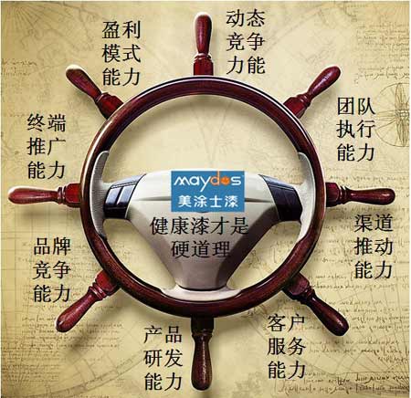 如果從這個角度看,對于已經(jīng)走出生存期的企業(yè),特別是要做大、做強的企業(yè)來說,就必須減少短板,并構建綜合能力?!霸诙瘫嘟拥?FONT color=#2248dd>涂料市場,單一能力已不具有競爭優(yōu)勢。為此,美涂士已形成了體系化的八大能力戰(zhàn)略組合。”任德忠對記者說:這不是一個空泛的概念,而是來自于每一個實實在在的營銷環(huán)節(jié),這是關鍵營銷子行為的合力,并且是有機的整合?!睆纳厦嫖覀円部梢钥吹?,在每個能力戰(zhàn)略下,美涂士都有落地策略、實際效果。同時,每個能力之間都是息息相關的,這也保證其不會出現(xiàn)散點和斷裂。最后,任德忠還補充道:“上述的八大能力只是一個個散點,只有在美涂士做‘健康漆第一品牌’的戰(zhàn)略主線下形成合力,并連接成戰(zhàn)略主線,最終才形成企業(yè)的戰(zhàn)略輪舵?!?nbsp;