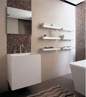 衛(wèi)生間瓷磚有腰線和花磚的要事先想好,將來其他東西裝好了不要擋住或沖突。如果是在尺寸沒量好的情況下鋪裝的,裝臺盆時才發(fā)現(xiàn)腰線貼低了,只好把臺盆的腿鋸短。瓷磚添縫劑用色粉配顏色的話最好先調(diào)試一點看一下,再決定用量,否則不是太淺就是太深。