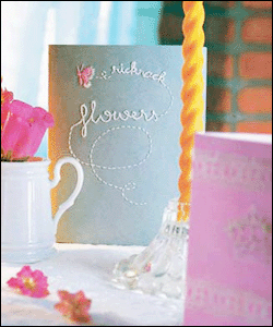 朋友或家人過生日時,送上一張繡有圖案及祝福語句的自制卡片,將會更加凸顯你的心意,同時帶給他人一份驚喜。制作卡片最好選擇較厚的紙張,先在紙上用粉筆畫出想要刺繡的圖案,然后繡上去就可以了。