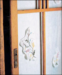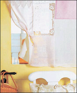 玄關(guān)入口或者廚房門口處,適合進行簡單的隔斷。在這里掛上簾子的話,不但能起到阻隔視線的作用,還能產(chǎn)生很好的裝飾效果。 制作簾子時最好選擇稍薄的材料,準(zhǔn)備大小不同的幾塊布料,分別繡上需要的圖案。最后,用針線將布料縫綴成為簾子就可以了。如果覺得刺繡有點困難的話,可以利用已經(jīng)繡有圖案的手帕,也不失為一種好方法。