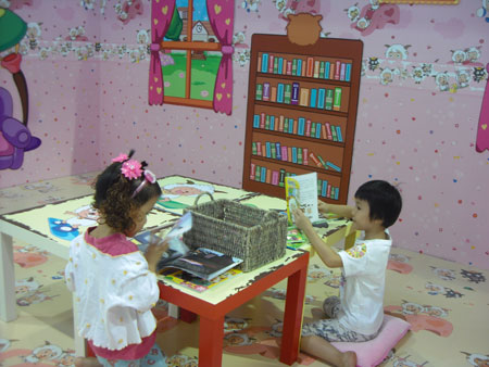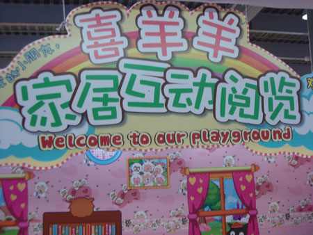 在喜羊羊的各個(gè)展覽區(qū)中,有一個(gè)面積20平米左右的“喜羊羊雜志家居互動(dòng)閱覽區(qū)”吸引了眾多參觀者的眼球,尤其是小朋友們的注意力。整個(gè)展區(qū)用喜羊羊形象的壁紙和地板裝飾成一個(gè)兒童閱覽區(qū),供小朋友們?cè)谶@個(gè)區(qū)域內(nèi)進(jìn)行讀書和繪畫的體驗(yàn)。粉色的喜羊羊形象壁紙讓進(jìn)入其中的小朋友們樂不可支,連陪同的家長(zhǎng)們都發(fā)出這樣的驚嘆,沒想到喜羊羊的可愛形象能夠在墻面上表達(dá)的這么生動(dòng)可愛。