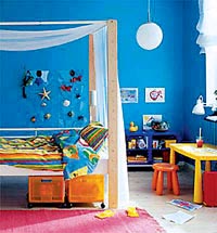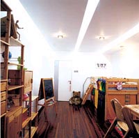 靜謐的藍色墻面點綴以貝殼海螺等飾物,是藝景盛裝飾設計師對整個空間的設計寫意,整個空間彌漫著海洋的氣息,本案是一個面積不大的兒童房,因為空間比較緊湊,所以,設計師在進行規(guī)劃時力求在滿足其使用功能的前提下,追求簡約、明快,著重從顏色搭配、飾物、家具來美化空間。藍色的墻面,淺木色復合木地板,配以淺木色的兒童床,床頭及上方配以輕柔的白紗織物進行裝飾,小而輕巧的兒童專用寫字桌可隨意變換位置,整個空間設計溫馨舒適,并具有較強的靈活性。