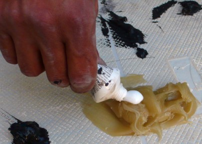 4.瓷磚涂膠:同時在瓷磚后背點(diǎn)注大理石膠與結(jié)構(gòu)膠(大理石膠中摻適量凝固劑),畢竟光靠銅絲來固定有點(diǎn)懸。