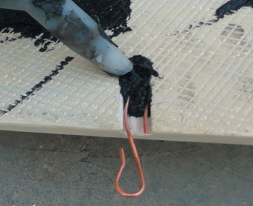 3.固定銅絲:銅絲和瓷磚之間要用專用結(jié)構(gòu)膠封閉,這樣才能保證銅絲受力不脫落。