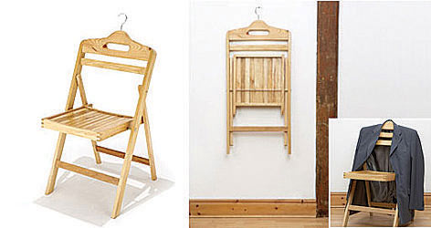 在日常生活中,折疊式椅子隨處可見,因?yàn)樗梢杂行У毓?jié)約寶貴的空間。不過對(duì)于家里空間過于局促的朋友,即便是折疊起來的椅子,恐怕還是不能完全令人滿意,那何不把椅子掛到空無一物的墻上去呢?于是設(shè)計(jì)師就將椅子的椅背直接設(shè)計(jì)成了衣架的樣子,平時(shí)可以直接將衣服掛在上面,當(dāng)椅子不用時(shí),還可以像掛鉤一樣將椅子直接掛在墻上,多方便呀!