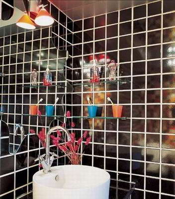 用顏色鮮艷、明快的小瓷磚組合,打破了衛(wèi)生間的傳統(tǒng)色調(diào),使空間變得靈動起來。衛(wèi)生間吊頂采用整面玻璃鑲嵌,增強(qiáng)了空間感與瓷磚和燈光相結(jié)合,置身其中使人有一種進(jìn)入夢幻世界的感覺。 裝修知識 裝潢www.ucrt3e.cn