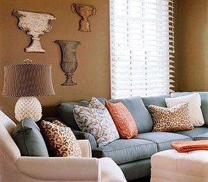 在流行裝飾榜上,藍(lán)色和褐色總是成對(duì)的出現(xiàn),但你一定要找到適合自己口味的搭配。如果你喜歡平淡一點(diǎn)的顏色,那么可以嘗試奶油咖啡色和法式藍(lán)色,同時(shí)搭配傳統(tǒng)一點(diǎn)的家具,比如背景墻和靠墊一類的東西,這些便宜的東西可以輕易地變更與裝飾的趨勢(shì)。